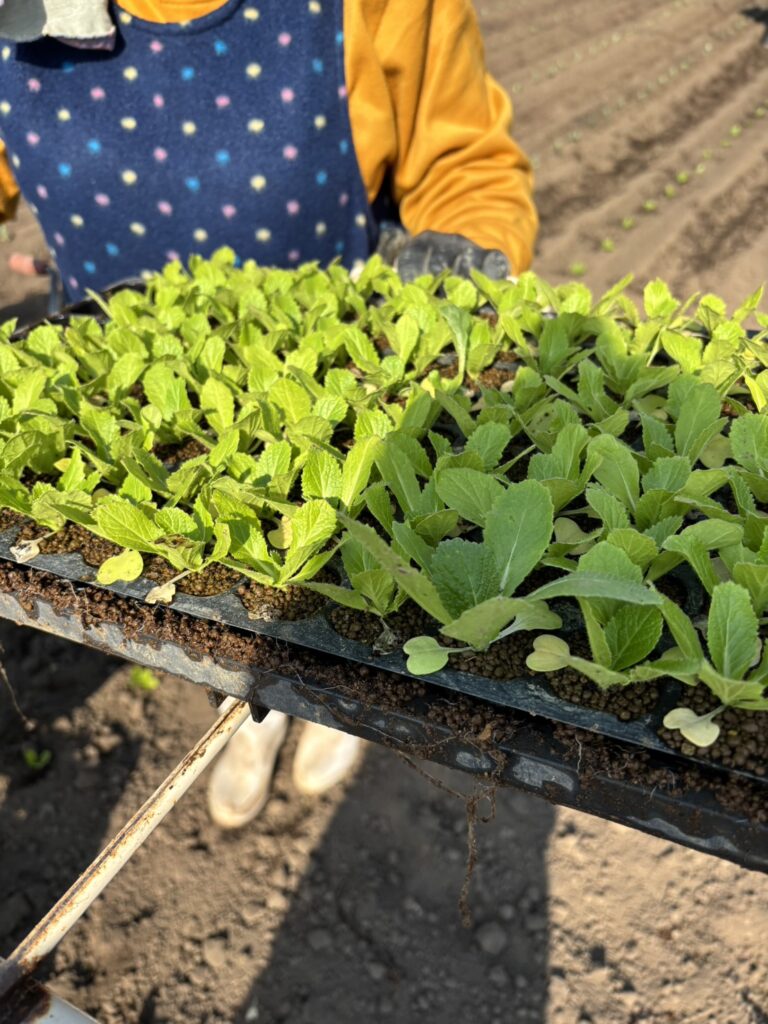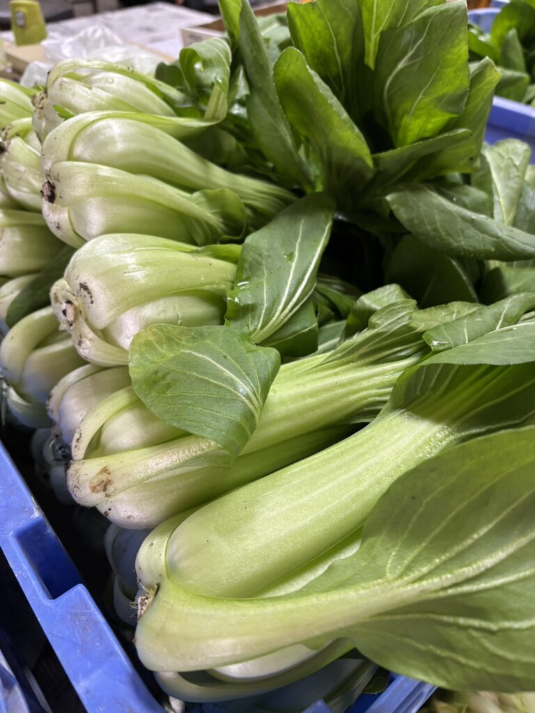 牛さんの堆肥の力もあり、チンゲン菜の株は大きく育っています。スーパーのチンゲン菜しか知らない方は、このサイズ感に驚くことでしょう。