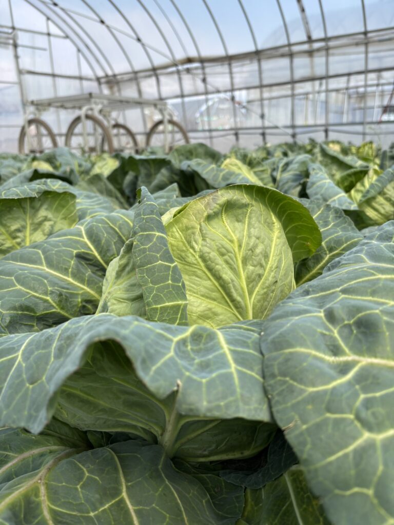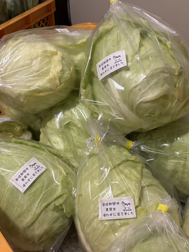 このキャベツは栽培期間中は農薬を一切使わずに工夫して育てています。