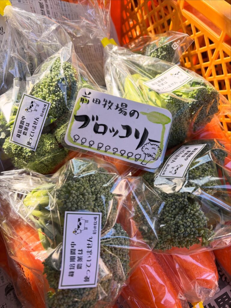 前田牧場の堆肥の力と工夫で農薬を使わずに育てた野菜を収穫中!